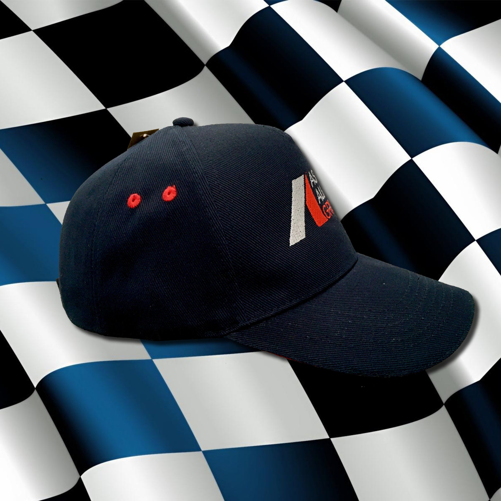 Stylish Beechfield Navy Baseball Cap with red trim with SRC logo embroidered.